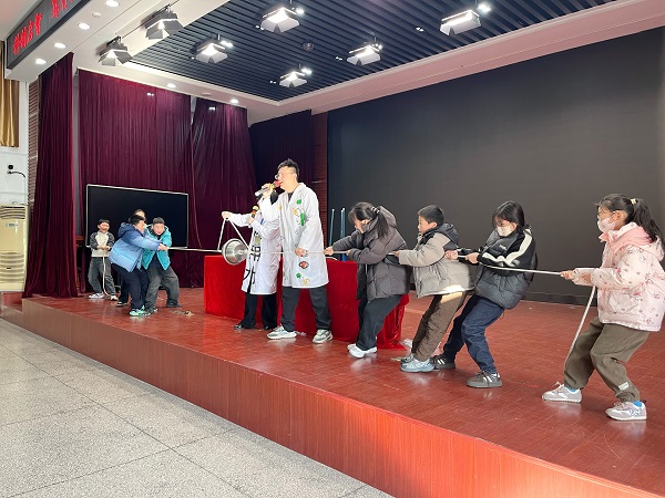 12月25日,“行走的科技馆”率先走进宜兴市洋溪小学。科技辅导员带来《是力也》与《尖叫科学秀》两大节目,打造别开生面的科学课堂。《是力也》以生活场景为切入点,用简易道具做趣味实验,将力的三要素、摩擦力等抽象概念具象化,同学们争相动手操作,现场学习氛围浓厚。随后的《尖叫科学秀》点燃全场热情,辅导员用幽默的语言、精彩的演示,让同学们在欢声笑语中领略科学神奇,近距离的互动体验充分激发了大家的好奇心与探索欲。 12月26日,科普热潮再升温,活动走进宜兴市和桥第二小学。两大科普节目以更具趣味性的实验设计,带来别样体验。《是力也》环节,塑料袋提水杯、板刷拎玻璃瓶的实验,直观展现静摩擦力的“隐形力量”。PVC管让羽毛逆势而上的现象,引得同学们目不转睛、争相发问。《尖叫科学秀》中,面粉爆炸实验带来震撼视觉冲击,创意尖叫桶引发阵阵欢呼。压轴的马德堡半球实验更是焦点,十几名同学合力拉扯却无法分开半球,切身感受大气压力后,辅导员的原理讲解让大家豁然开朗。 两场活动是宜兴市科技馆践行科普惠民、助力素质教育的生动实践。未来,科技馆将继续发挥科普主阵地作用,开发更多新颖有趣的科普活动,让科学的种子在更多青少年心中生根发芽。 『关闭本窗口』