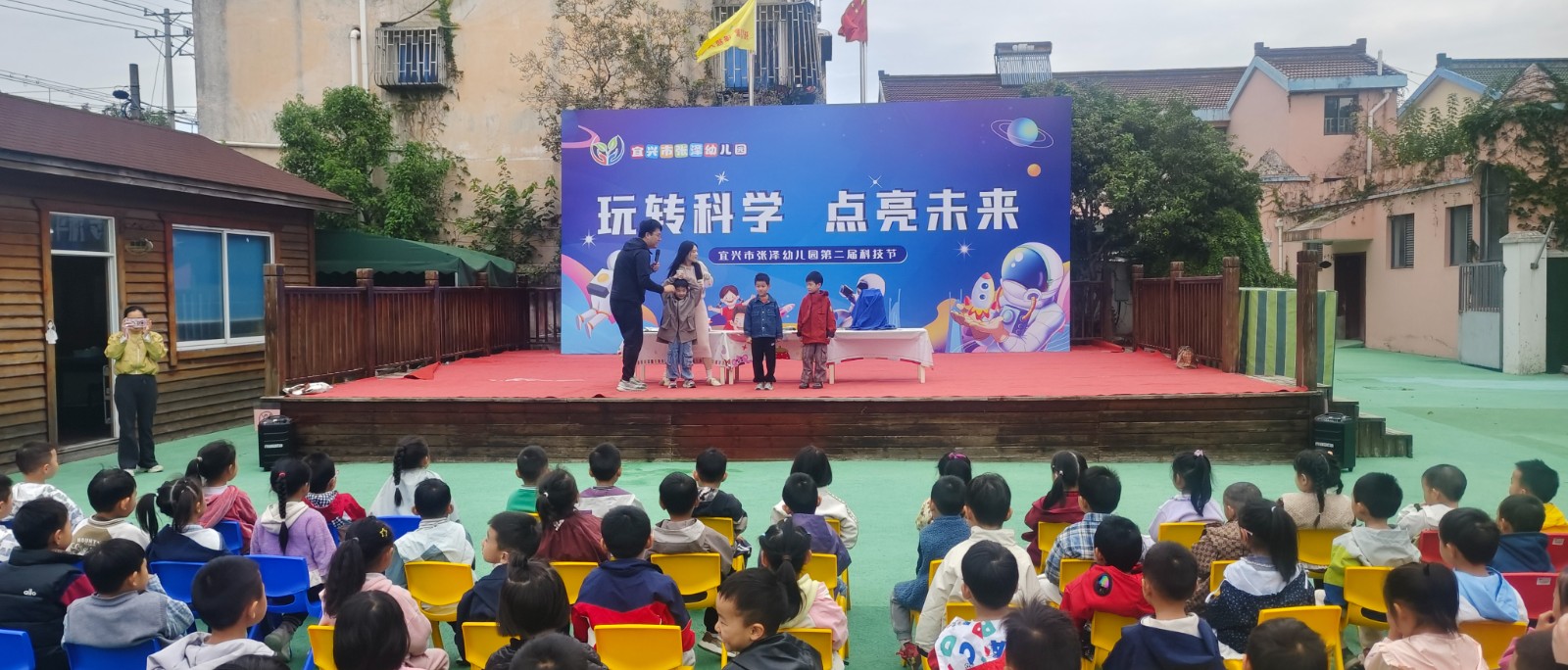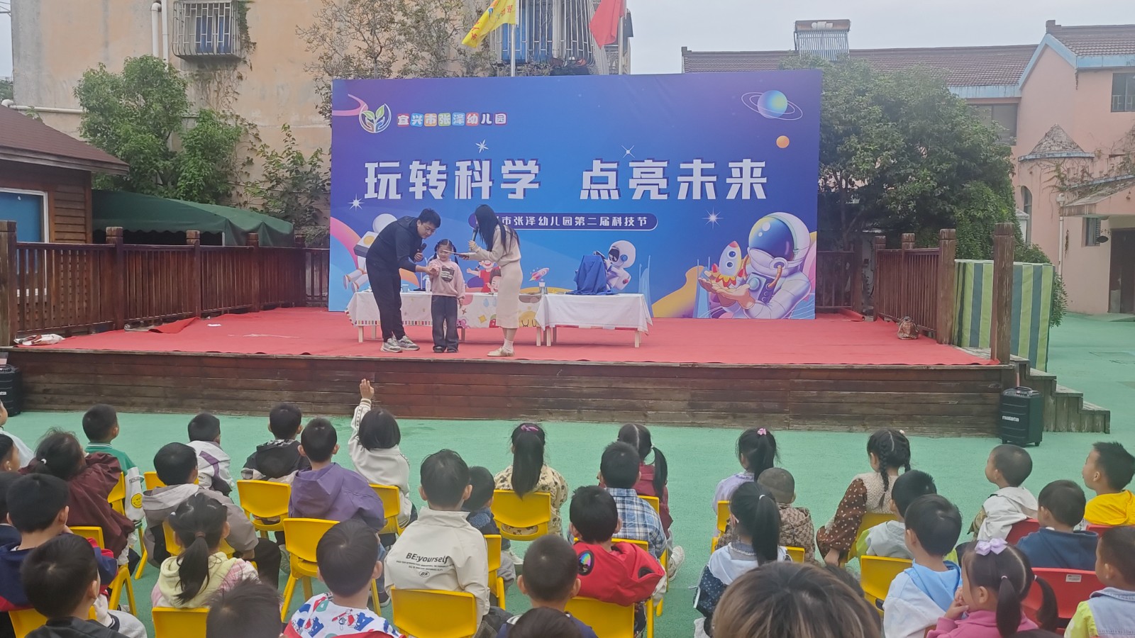 11月6日,宜兴市科技馆“行走的科技馆”文明实践志愿服务项目走进张泽中心幼儿园,为200多名小朋友带来了一场沉浸式科普盛宴,让抽象的科学原理变得看得见、摸得着。 “水与火也能做朋友?”“水与火的碰撞”环节一开场就勾起了孩子们的好奇心。科普老师先演示“火纸燃烧”实验:特殊纸张遇火瞬间消失,没有残留半点灰烬,孩子们瞪大双眼直呼“好神奇”!更令人惊叹的“水中捞火”实验,打破了孩子们“水火不相容”的固有认知。 “摩擦趣多多”环节更是让现场变成了欢乐的科学课堂:火石碰撞产生火星,还原了远古人类的取火智慧,让孩子们知道“摩擦生热”的原始应用;拉桌布实验中,老师快速抽走桌布,桌上的积木却稳稳当当,悄悄传递了惯性的科学原理;最后的打积木游戏,孩子们在动手推倒积木的过程中,亲身感受摩擦力的奥秘。“老师,再来一次!”孩子们的欢呼声此起彼伏,探索热情被彻底点燃。大班小朋友兴奋地说:“科学太好玩了,我长大也要当科学家,解锁更多秘密!” 此次“行走的科技馆”科普进校园活动,以趣味实验为载体,将枯燥的科学知识转化为生动的互动体验。不仅让孩子们近距离感受科学的魅力,更在他们心中播下好奇与探索的种子,助力科学思维从小培养,让科学探索成为童年最有趣的“必修课”。